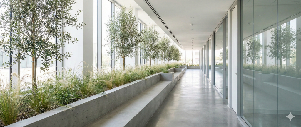 식물은 소음을 부드럽게 흡수하는 천연 흡음재이자, 실내 온습도를 스스로 조절하는 살아있는 에어컨입니다. 기계적인 장치로는 흉내 낼 수 없는 자연의 순환 시스템을 통해, 에너지를 절감하고 가장 쾌적한 물리적 환경을 제공합니다.
